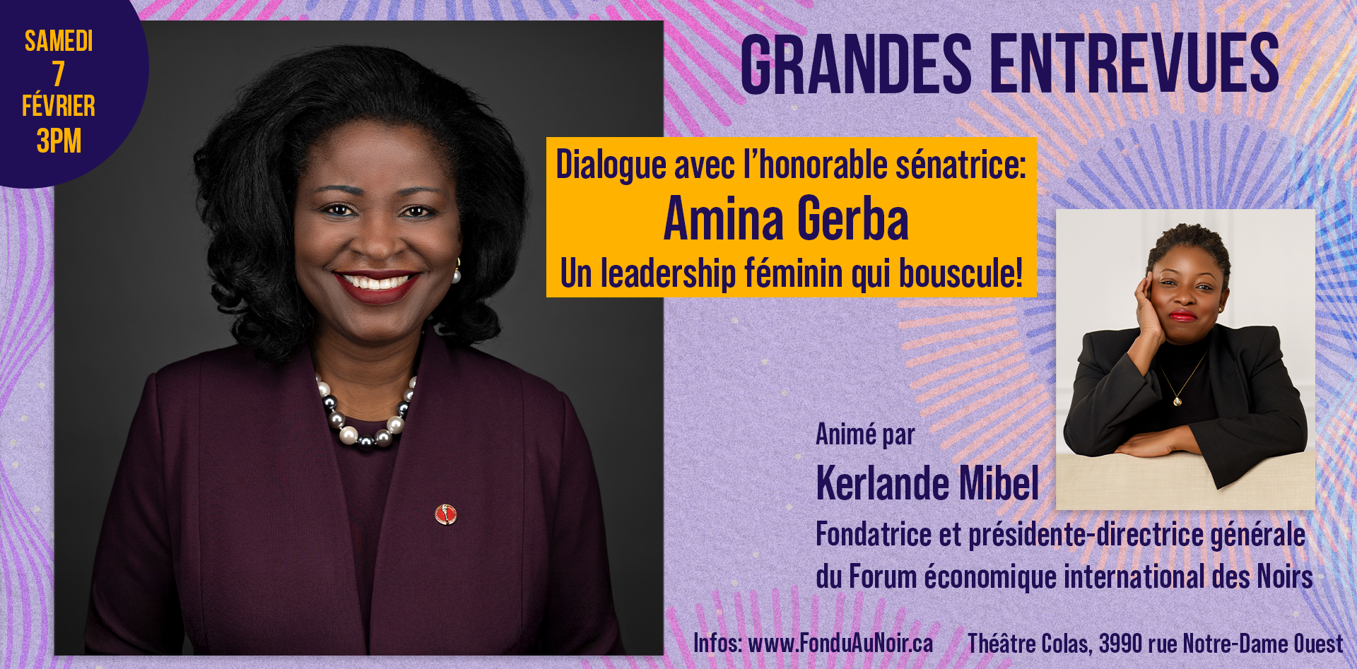 Ce dialogue mettra en lumière le parcours remarquable de l’honorable Amina Gerba, Sénatrice indépendante du Québec depuis juillet 2021.