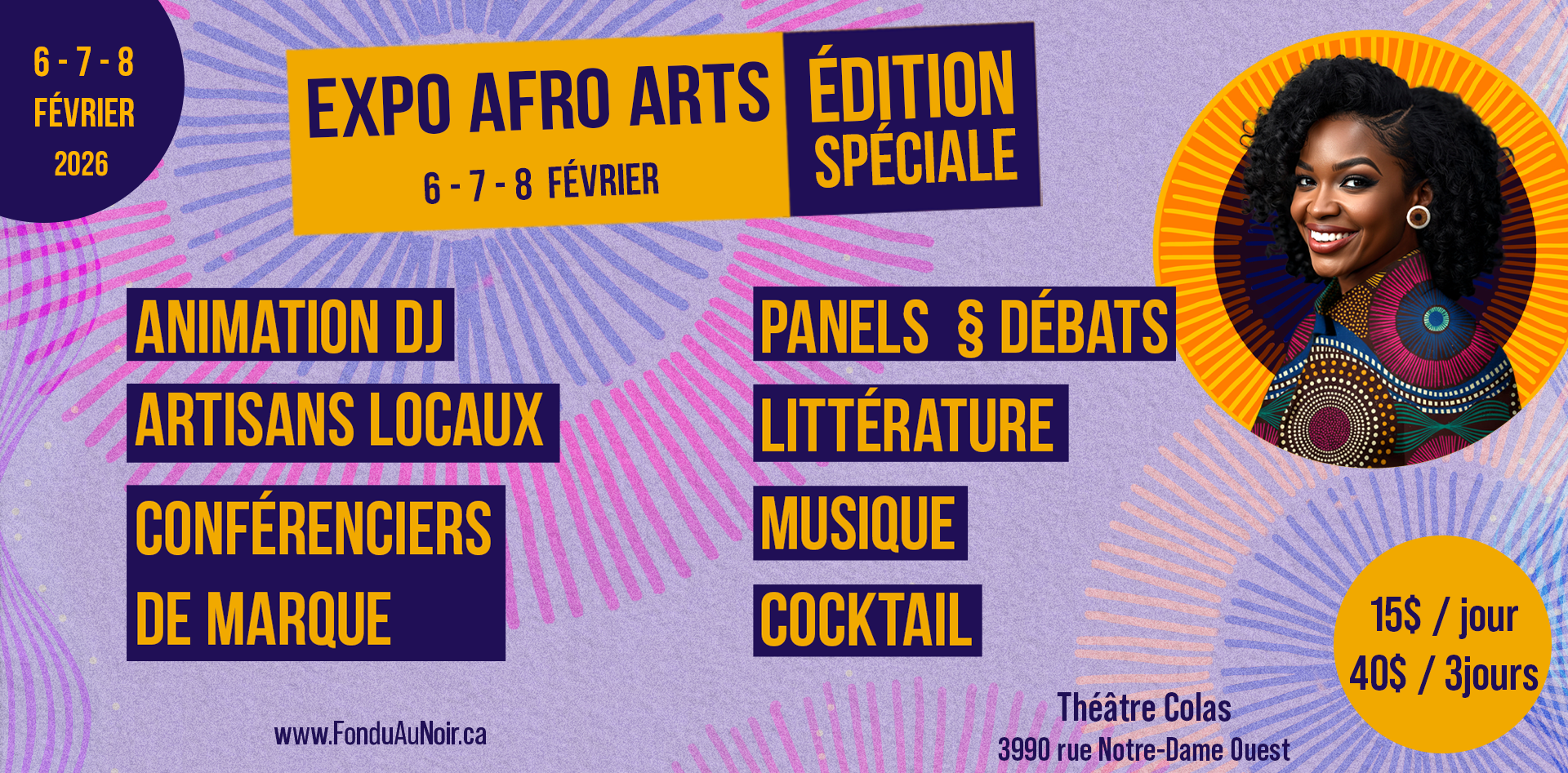 Pour célébrer ses 15 ans, le Festival Fondu au Noir présente l’Expo Afro’Arts : trois jours de festivités vibrantes au Théâtre Colas, le vendredi 6 février de 17 h à 22h, le samedi 7 février de 11h à 21h et le dimanche 8 février de 11h à 19h. Cet événement exceptionnel réunit plusieurs artisans et créateurs afrodescendants de Saint-Henri et des environs, invitant le public à plonger dans un univers foisonnant de couleurs, de saveurs et de créations uniques. Mode, bijoux, design, art et gastronomie s’y rencontrent dans une célébration vivante de l’héritage africain et caribéen. Trois jours de découvertes, de rencontres et d’énergie festive, où chaque œuvre raconte une histoire et met en lumière le talent, la créativité et la richesse des communautés noires. Un rendez-vous incontournable.