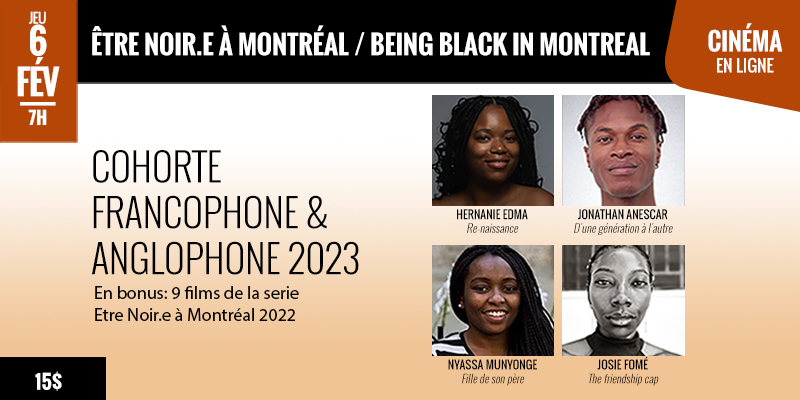 Le Festival Fondu au Noir est fier de présenter les 5 court-métrages documentaires Francophones et anglophones de Être Noir.e à Montréal de l’édition 2023 du programme Être Noir au Canada de la Fondation Fabienne Colas. Un programme présenté par Netflix, en collaboration avec la Banque Nationale, et supporté par Téléfilm Canada, le Fonds des médias du Canada et le Conseil des arts du Canada.